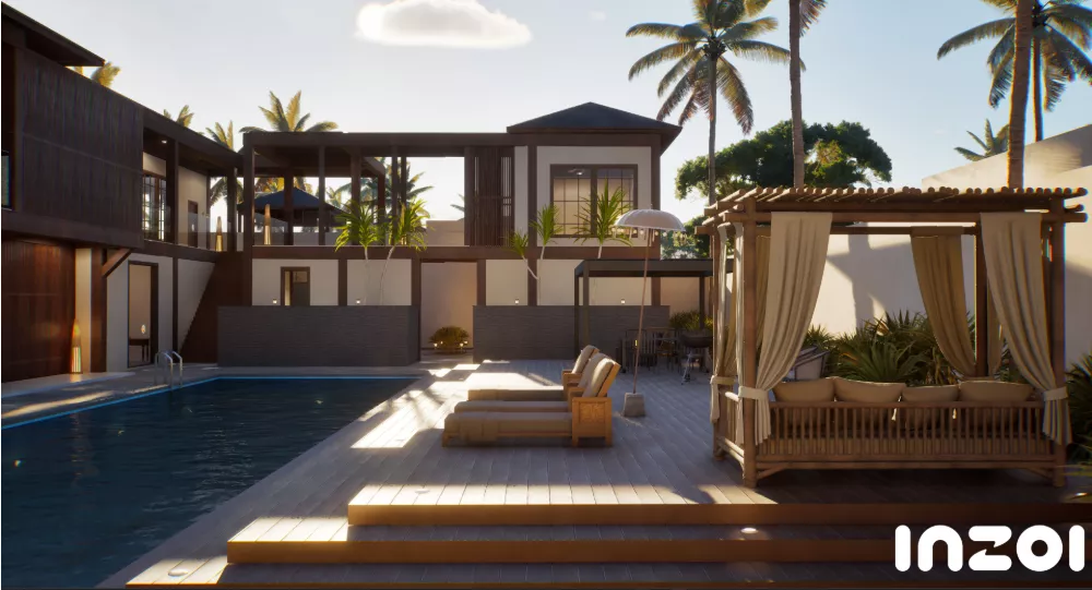 Zusätzlich wurden architektonische Elemente wie Swimmingpools, Aufzüge und verschiedene neue Möbel hinzugefügt, damit du deine inZOI-Welt auf individuelle Art und Weise ausstatten kannst.